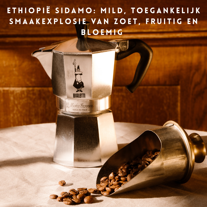 De Ethiopië Sidamo is een Single Origin bestaande uit 100% Arabica bonen; complex, fruitig en zoet van smaak, als je goed ruikt, ruik je de frisse Jasmijn Bloesem.