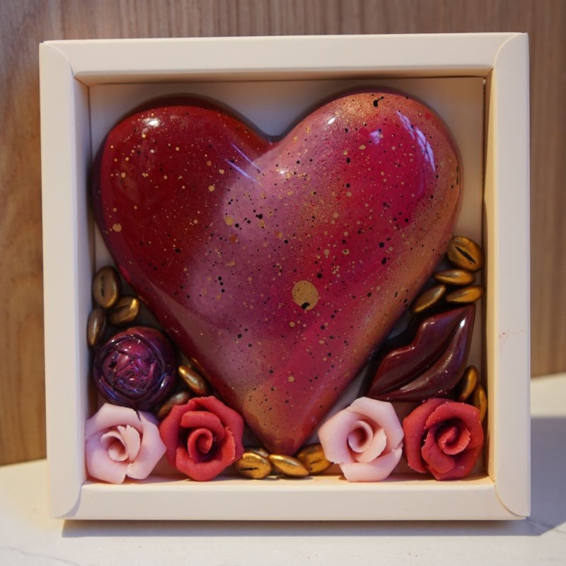 Dit prachtige chocolade hart is gemaakt in ons Eigen Chocolade Atelier.